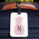 monogram pink glitter pineapple luggage tag