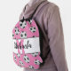 Monogram Pink Initial Soccer Ball Pattern Drawstring Bag