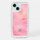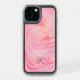 Monogram Pink Marble Swirl & Gold Glitter Pattern iPhone 15 Case