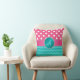 Monogram pink polka dots turquoise chevron sparkle throw pillow