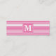Monogram pink stripes mini business card