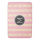 Monogram Pink Stripes Modern Heart Pattern Bath Mat