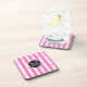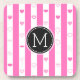 Monogram Pink Stripes Modern Heart Pattern Beverage Coaster