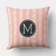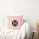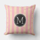 Monogram Pink Stripes Modern Heart Pattern Throw Pillow