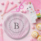 Monogram Pink Sunray Shabby Texture Paper Plates