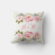 Monogram Pink Wedding Anniversary Flower Wreath Throw Pillow