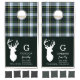 Monogram Plaid Rustic Family Name Tartan Cornhole Set you can easily customize by clicking the "Personalize" button, Featuring deer silhouette and clan Walsh in green checkered pattern