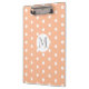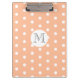 Add a touch of charm to your workspace with this personalized peach polka dot clipboard! Featuring a soft peach background adorned with classic white polka dots, this stylish clipboard brings both function and flair to your desk. A bold monogram centered in the middle adds a personalized touch, making it uniquely yours. Whether you're a teacher, student, nurse, or busy professional, this clipboard is perfect for staying organized in style. Makes a thoughtful gift for coworkers, friends, or anyone who loves a pop of personality in their everyday essentials!
