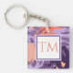 Monogram Purple and Coral Abstract Keychain