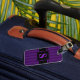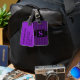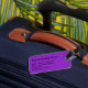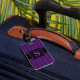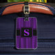 Luggage tag with a purple and black pinstripe pattern and your monogram. Pinstripes are very thin parallel stripes. Personalize with your monogram initial and information using the easy templates. Font color, font style, and font size are customizable.