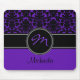 This modern and trendy monogrammed purple, black, and white damask pattern mousepad has template boxes for you to personalize with your own name, initials, monogram, or other text. If you need any help customizing this trendy mousepad, please email niteowlstudio@gmail.com.