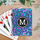 Sparkly, girly turquoise blue, purple, pink, and green confetti dots on a dark teal background adorn these chic, modern monogramed playing cards. Makes a fun and stylish statement every time you play games with them. A great gift for a friend, as well as yourself! Sure to add some bonus luck!
