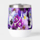 A purple blue white pansies floral thermal wine tumbler. Monogram it with your initial. These make great bridesmaid gifts.