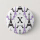 Monogram Purple Chic Eiffel Tower Pattern Button