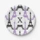 Monogram Purple Chic Eiffel Tower Pattern Paper Plates