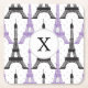 Monogram Purple Chic Eiffel Tower Pattern Square Paper Coaster