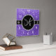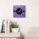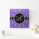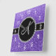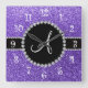 Monogram purple glitter diamond black circle square wall clock