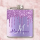 Monogram Purple Glitter Drips Girly Sparkle Flask