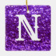 Monogram Purple Glitter Metallic Christmas Ceramic Ornament