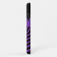 Monogrammed modern black and purple FAUX glitter zebra print stripe pattern Case-Mate Apple iPhone 11 case with PRINTED ribbon and PRINTED jewel brooch. Customize it to add your name, initial, or other text. If you need assistance, email niteowlstudio@gmail.com.