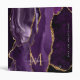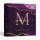 Monogram Purple Gold Agate Geode School Office 3 Ring Binder