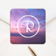 Monogram purple pink ocean sunset photography bold square sticker