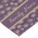 Customize this elegant purple table runner with a pattern of gold star-bursts with your family name.