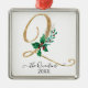 Monogram Q Christmas Glitter Gold Holly Foliage Metal Ornament