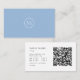 Elegant Monogram. Carolina Blue background. Insert name, address, phone, website, Qr code, and email