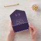 This chic minimalist all-in-one wedding invitation can be personalized with your monogram initials and wedding day information on a purple background. The invitation includes a perforated RSVP card with your wedding website QR code and details. Designed by Thisisnotme©
