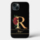 Monogram R golden custom name red roses black Case-Mate iPhone Case