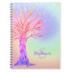 This pretty notebook is decorated with a tree and a background in rainbow unicorn colors and sparkling stars.
