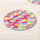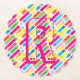 Monogram Rainbow Diagonal Lines Pattern Pop Art Paper Coaster