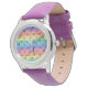 The watch looks exactly as depicted. I was especially pleased with the watch band, which is a nice quality, supple leather. I point this out because an option, which was sold out, was with a multi-colored but clearly plastic band. This is the better choice, in my view.