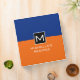 Monogram Recipe Modern Orange Dark Blue 3 Ring Binder