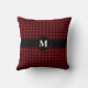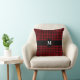 Monogram Red & Black Gingham Plaid Checks Pattern Throw Pillow