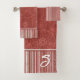 Monogram Red Boho Pattern and White Stripes Bath Towel Set