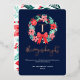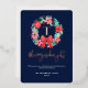 Monogram Red Bow Wreath Blue Christmas Foil Holiday Card