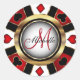 Monogram Red Casino Poker Chip Design Classic Round Sticker