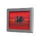 A great design featuring a stylized embossed-looking red heraldic dragon standing in the passant guardant aspect. The red brushed metal-looking background has a red stripe for your monogram. Change the one provided to the initials you want, personalize with other text or blank out if you like - your choice!