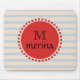 Monogram Red Gold Striped Circle Mouse Pad