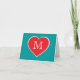 This card features a shapely red heart outlined in white containing a monogram initial. Click "Customize it" to re-size/re-position the red heart, change background color, and/or customize text. The card is blank inside, awaiting your personalized text or handwritten sentiments. Choose font style, size, and color.