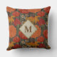 Monogram Red Orange Flowers and Daisies Brown Wood Throw Pillow