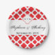 Monogram Red Quatrefoil Pattern Wedding Paper Plates
