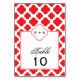 Monogram Red Quatrefoil Pattern Wedding Table Number