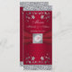 Monogram Red, Silver Foil-LOOK Floral Menu Card
