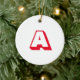 Monogram red and white custom initial letter Christmas Ceramic Ornament