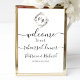The product was so pretty! I was surprised when it arrived that it was just poster thickness but I purchased a foam board and used two sided tape to attach it so it could stand up. Perhaps I didn’t read carefully regarding the thickness of the paper. With this poster and the same design napkins, place cards and table cards, the rehearsal decorations were perfect! I added single burgundy hydrangeas to clear vases with fairy lights inside as centerpieces and it looked wonderful! Colors were beautiful! Printing was excellent!