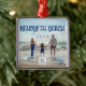 Monogrammed custom Rehoboth Beach, Delaware souvenir premium square metal Christmas tree ornament with customizeable year date and a sunny seashore scene of a happy family enjoying the beautiful mid Atlantic sun, surf and sand.