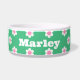 Monogram Retro Daisies Pattern Pink & Green Custom Bowl